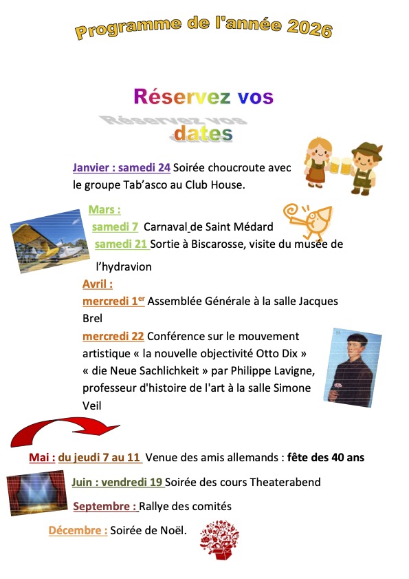 Le samedi : visite du marché, rencontre devant l’arbre du jumelage dans le parc de l’ingénieur avec d’autres membres du comité de jumelage, visite du musée du patrimoine commentée par Arlette Capdepuy présidente de l’association du Patrimoine.
